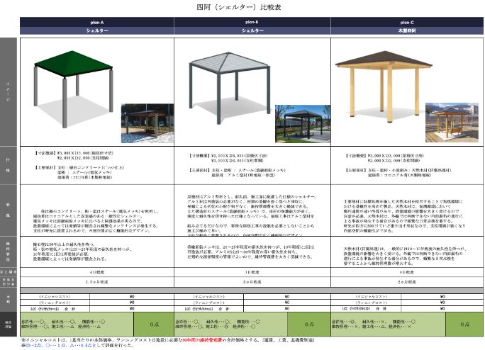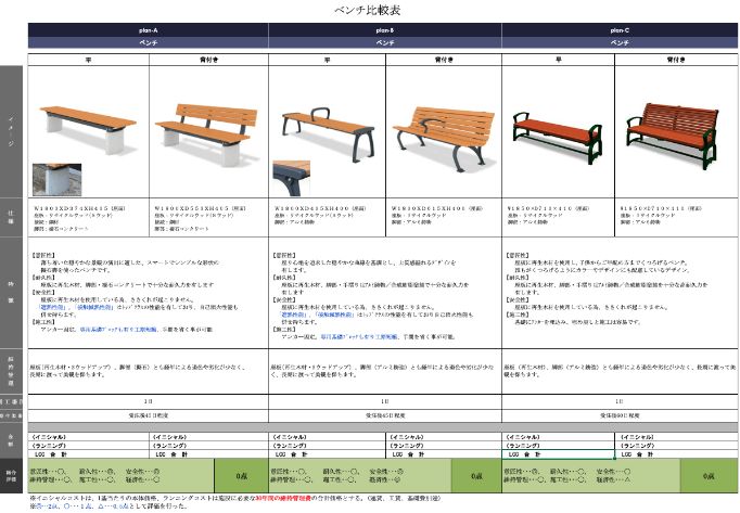 ご提案する施設には、製品の選定根拠となる比較検討書なども作成させていただきます。比較検討書イメージ